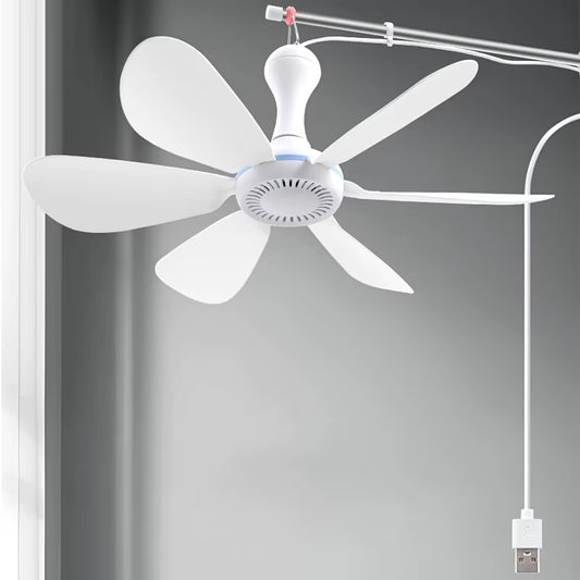 USB Fan Silent 6-Blade Ceiling Fan 4-Speed Hanging Fan for Camping Bed Camping Outdoor Hanging Camper Tents